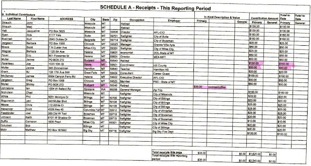 The campaign finance reports were due in on Thursday and one of our readers was good enough to send us a copy of House District 33 candidate Jack Trethewey’s report that shows all his campaign finance support to date which is posted below with the exception of $420 which was given him by Union PACS. Of the $1,625 that Jack has collected this reporting period only $215 was contributed by people living in his district and of that $185 was given by relatives and a mere $30 was contributed by a person he works with. It doesn’t appear that Jack has much support amongst his comrades. Jack is running against Phillip DeFelice of Havre in the primary on June 8th.
